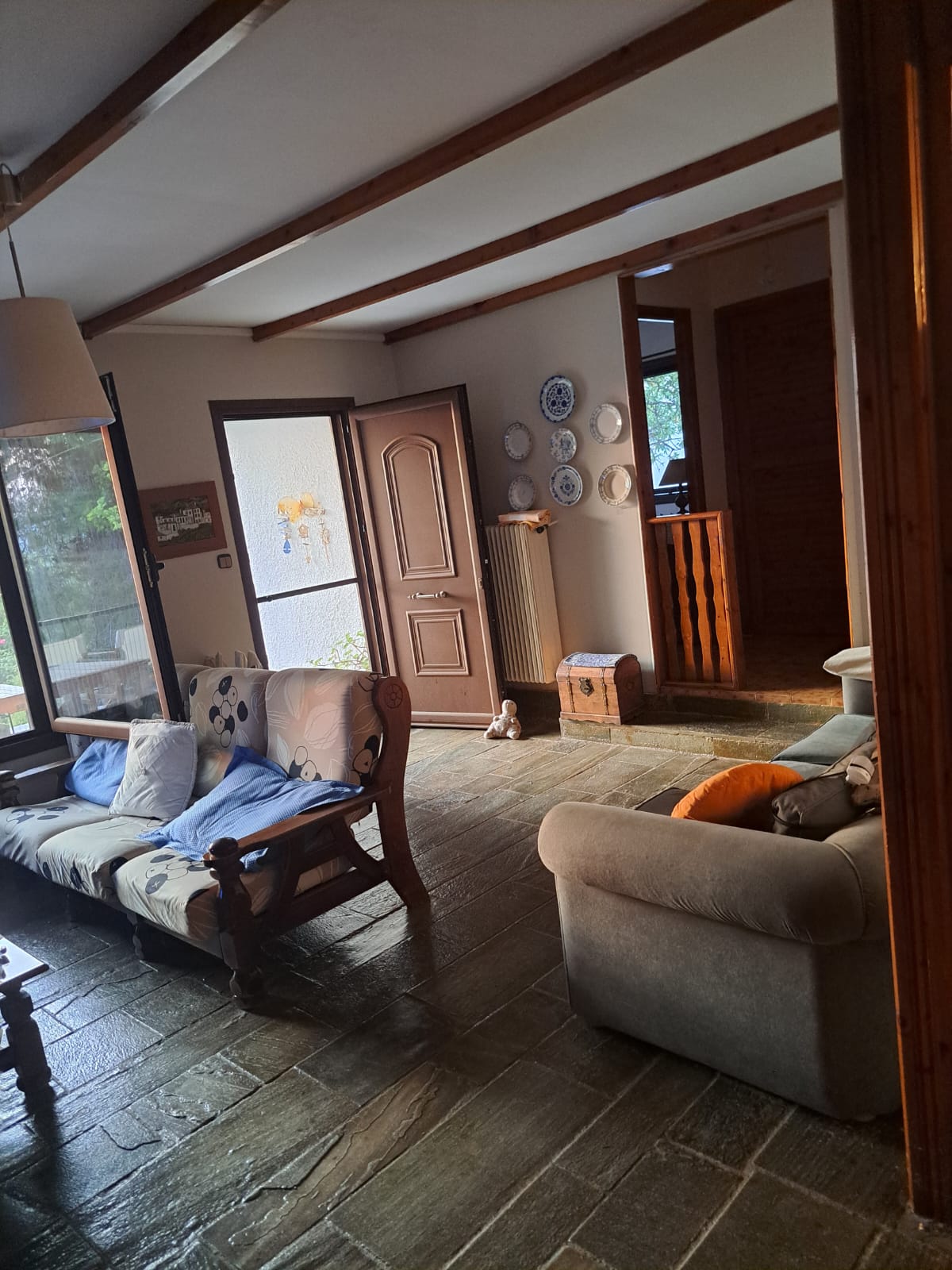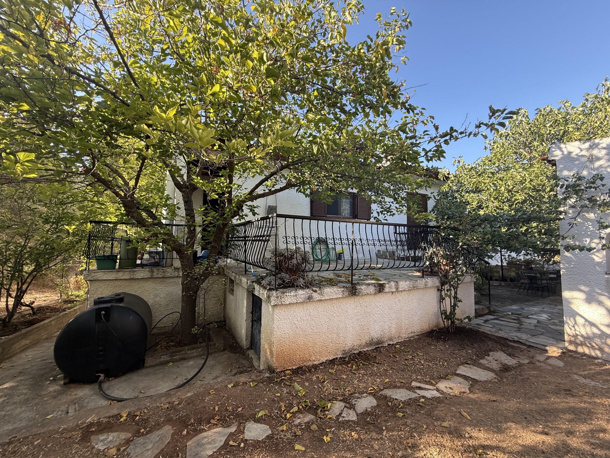Μονοκατοικία με ημιυπόγειο κύριας χρήσης συνολικής επιφάνειας 69,49 τ.μ. και υπερυψωμένο ισόγειο κύριας χρήσης συνολικής επιφάνειας 79,33 τ.μ. , που βρίσκεται σε γεωτεμάχιο συνολικής επιφάνειας 887,55 τ.μ. στην θέση Αλυκές στη Δροσιά Χαλκίδας. Το ημιυπόγειο αποτελείται από ενιαίο χώρο κουζίνας – καθιστικού με τζάκι ,ένα υπνοδωμάτιο και λουτρό. Το υπερυψωμένο ισόγειο αποτελείται από κουζίνα, καθιστικό με τζάκι, δυο υπνοδωμάτια και λουτρό. Επιπλέον, στον ακάλυπτο του οικοπέδου βρίσκεται κεραμοσκεπές στέγαστρο με bbq.
